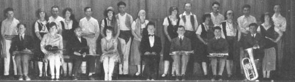 The High School Orchestra has performed creditably at several public functions this year. Its success may be attributed to the work of the individual players, and to the untiring efforts of its able director, Mr. Potter.