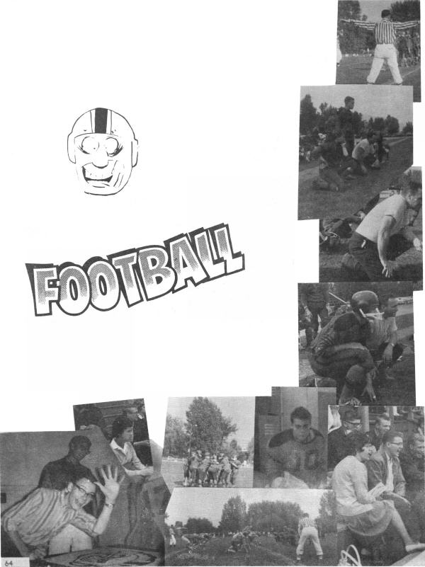 This year's football team: (Left to Right) First Row: John Sbrocchi (Maskot), Jim Fulton (Manager) Second Row: Mark Tait, Jim French, Wayne Gesy, Buddy Ringer, Jim Ringer, Dave Workman, Bob Morrison, Wally Denault Third Row: Jim Butkus, Dan Cadden, Bill Baker, Morrie Morrison, Don Youwe, Ron McGuire, Jim Wyse, Bill Mainprize, Grant McLeod (Coach) Fourth Row: Andy McLaren, Terry McKay, George Berton, Tony Benstead, Charlie Cook, Earl Stoughton Fifth Row: Bob Gordon, Ken Cooper, Ray Stewart, Clive Giolma, Bert Gaiten, Doug Smith, Garry Rutherford. Brian Bogetti Missing: Terry Galbraith, Glen Esselmont, Roy Jackson Ken Priece Wayne Leveay Sandy Cassidy, Ray Shellard, Gerry Collinge, George McGillvary, Terry Gay