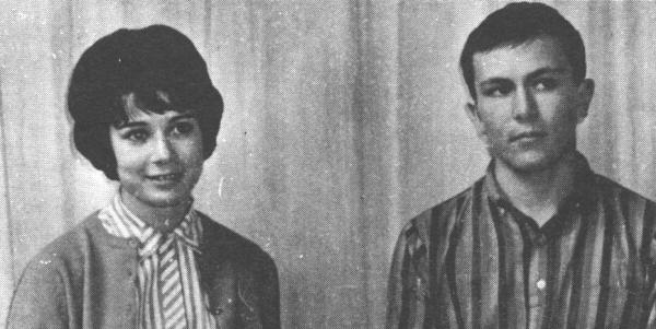 Fine Arts Council executive for the 1963-64 was (seated-left to right) Barbara Derewenko - Secretary, Rodger Waddell - Chairman, and Sharon Carson - Treasurer. Standing are Sharon Tucker and Linda Irvine Those members missing from the picture are Lynn Dalgleish, Marg Ladbury, John Balf, and Darlene Hoshowski.